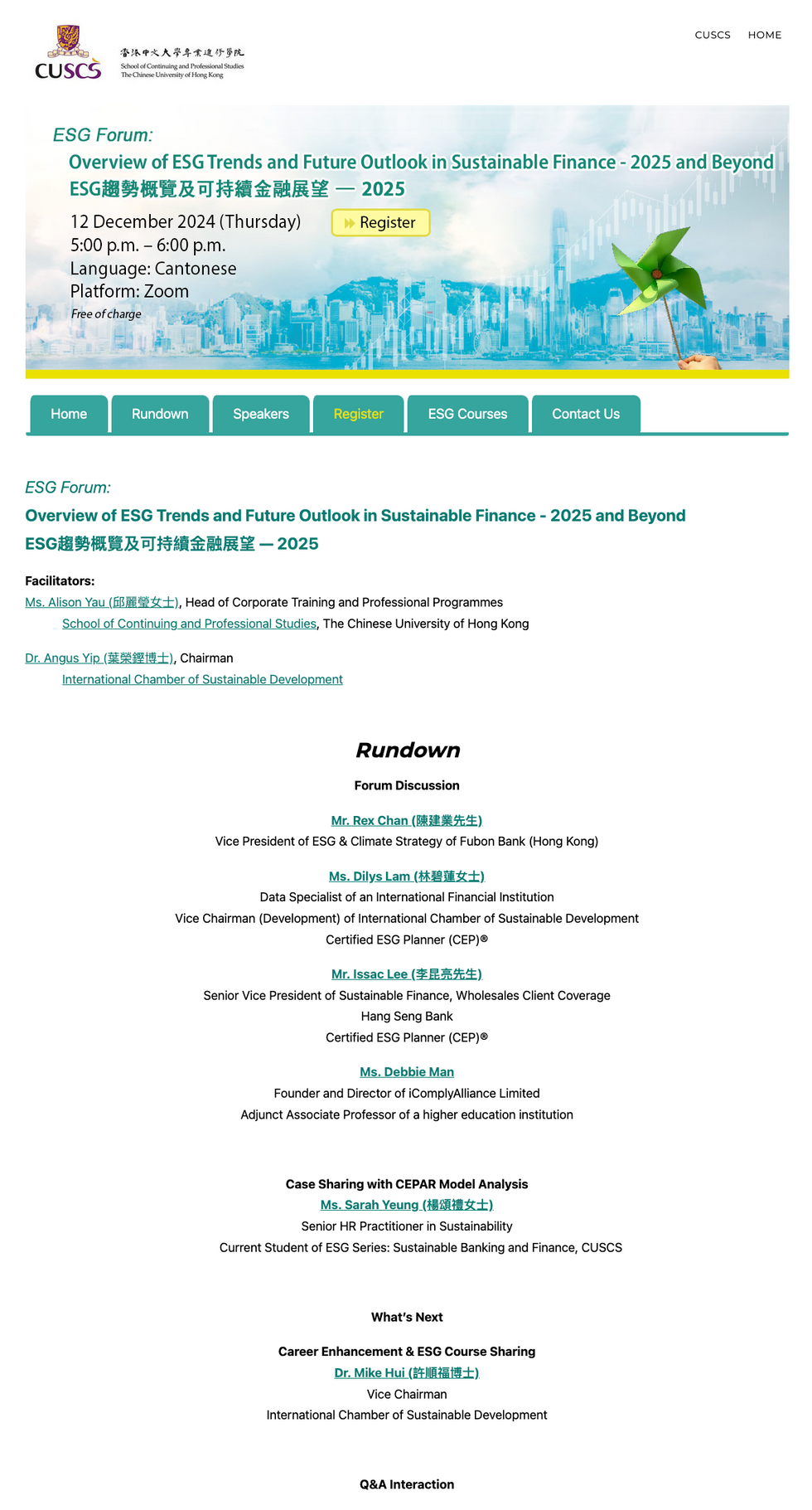 ICSD was honoured to co-host a seminar with Cambridge Institute for Sustainability Leadership (CISL) at HKCEC. The topic was Beyond ESG - Leading the Transition to Competitive Sustainability in Asia. There were two keynote speeches and two panel discussions.
