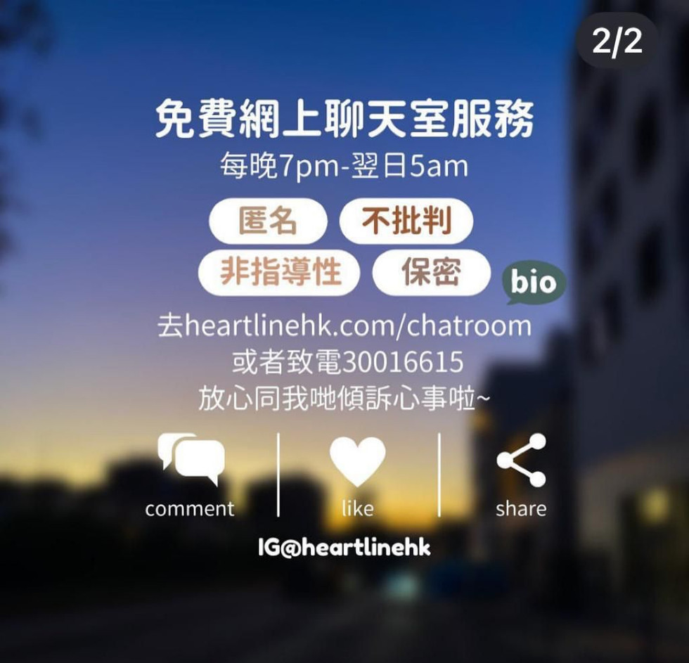 Heartline Hong Kong is an initiative that offers a free, non-judgmental listening service to individuals in need. Through our online texting platform and hotline, we provide support from 7pm to 5am every night. Since our establishment in 2021, we have helped over 3900 callers, with an average post-call rating of 4.5/5.