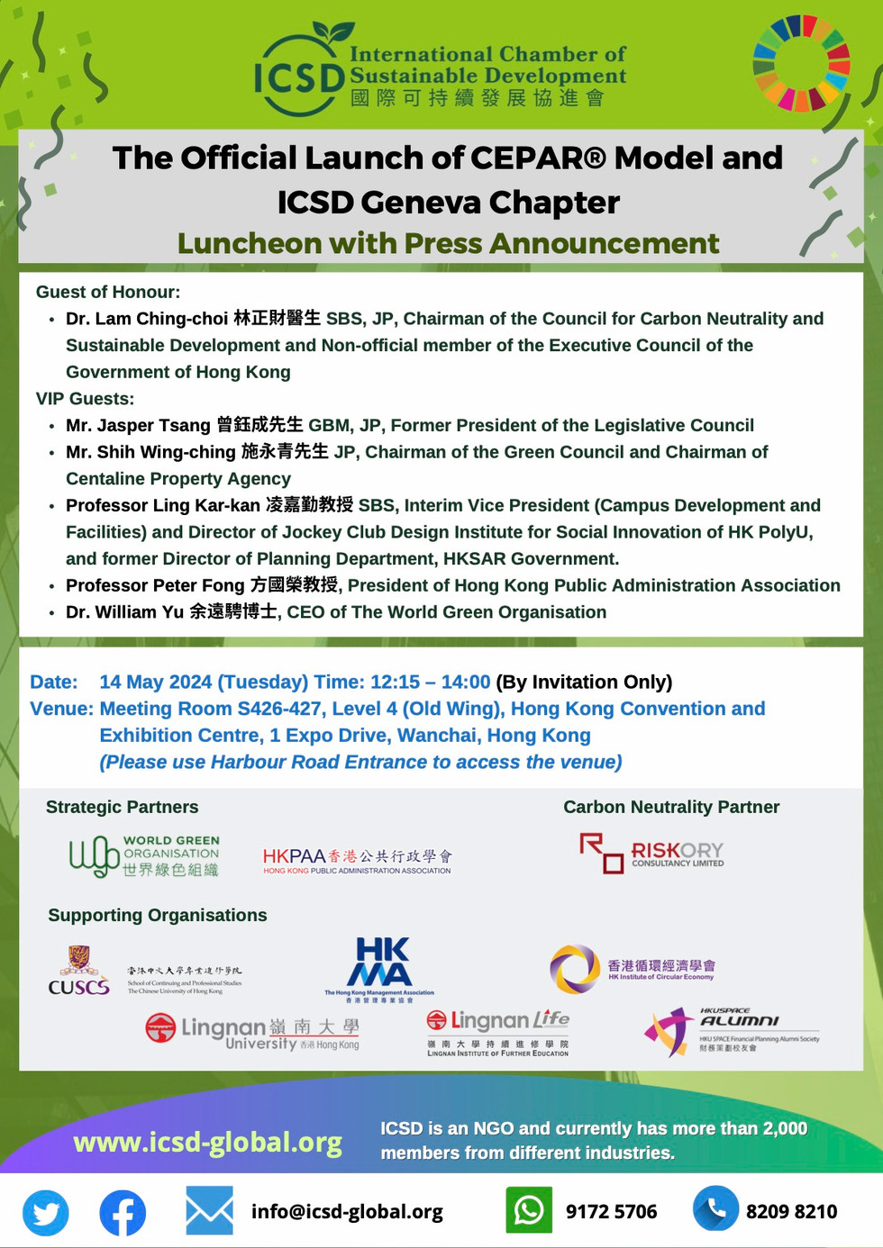 ICSDMay 14, 20241 min readUpdated: Dec 4, 2024The Press Announcement Luncheon for the Official Launch of CEPAR® Model and ICSD Geneva Chapter on 14 May 2024