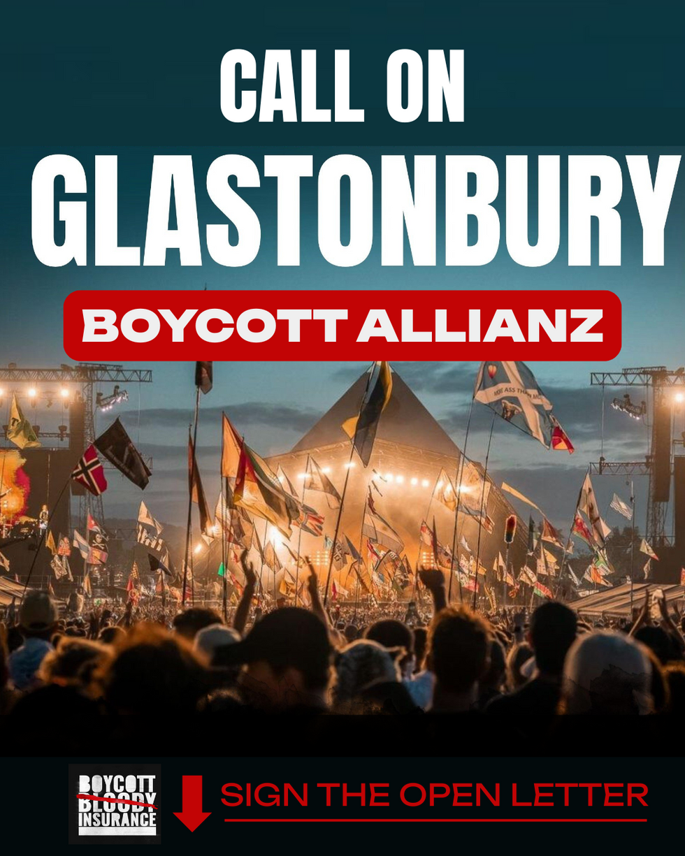 Boycott Bloody Insurance - calling on Glastonbury Festival to drop Allianz. Please see the open letter: Visit Link