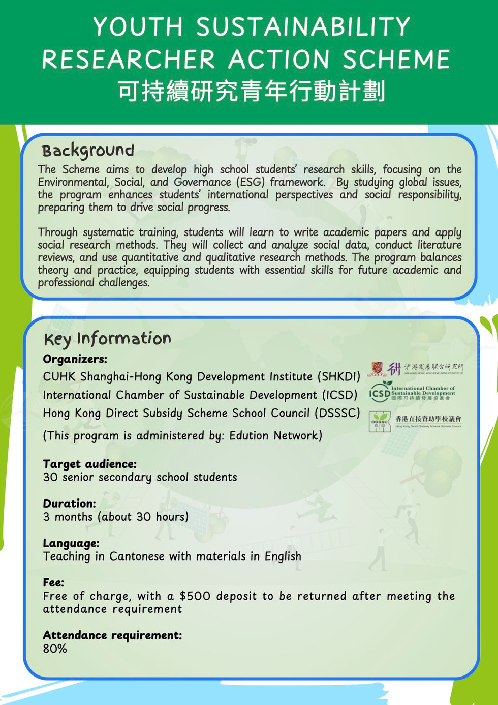 2025年2月8日ICSD與香港中文大學及香港直接資助學校議會聯合舉辦為期三個月的「可持續研究青年行動計劃」