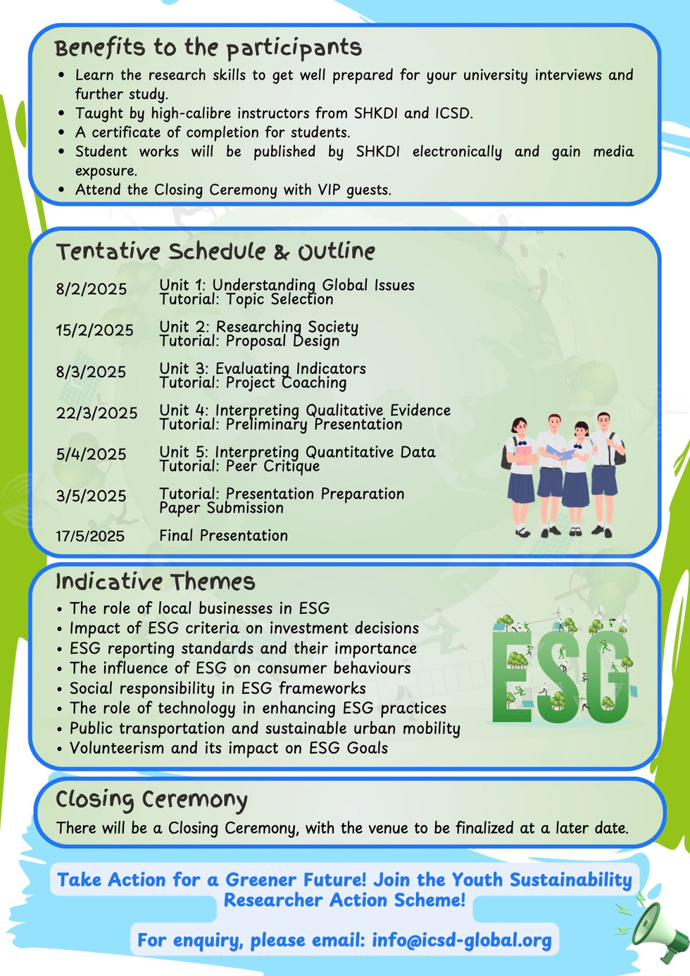 2025年5月17日,由ICSD全資贊助香港中文大學為中學生舉辧的「可持續研究青年行動計劃」完滿結束及舉行閉幕禮