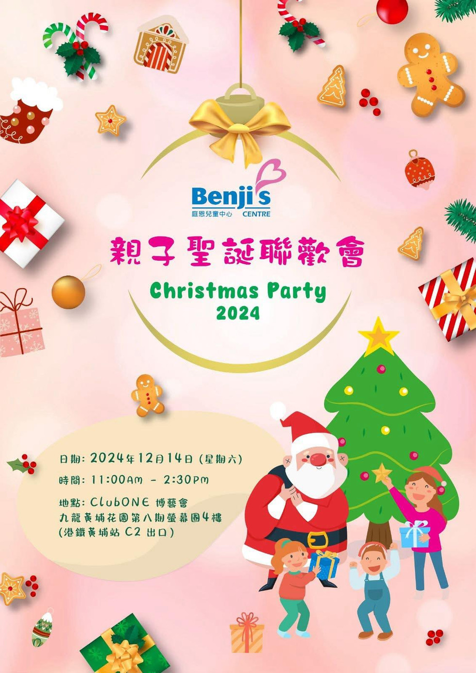ICSD2024年12月14日讀畢需時 1 分鐘已更新:1月28日ICSD贊助150位兒童及家長參加「庭恩兒童中心」在2024年12月14日舉辦的聖誕聯歡聚餐有關庭恩兒童中心的工作,請參閱:https://www.benjiscentre.org.hk/